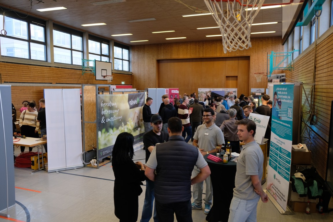 Das, was Hildegard Mühler gemeinsam mit den Schulleitern von Werkrealschule, Realschule und SBBZ, Julia Kiebler, Dietmar Schiller und Karolin Prinz in Zusammenarbeit mit dem HGV an diesem Dienstagabend auf die Beine gestellt haben, hatte durchaus Messeformat. 52 Aussteller verteilten sich auf sechs Locations, neben dem Schulhof, dem Flur der Realschule, dem Foyer der Werkrealschule, dem Foyer des SBBZ waren die Mensa des Schulzentrums sowie die Turnhalle Vier picke packe voll mit Ausstellern aus den verschiedensten Branchen.
