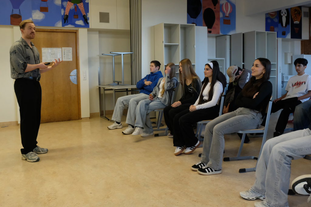 Im Anschluss an die Aufführung fand eine Nachbereitung mit den Klassen 8 bis 10 statt. In Gesprächsrunden, begleitet von der Schulsozialarbeit und dem freiberuflichen Referenten und Psychologen Paul Marx, der im Auftrag des Instituts inside.out arbeitet,