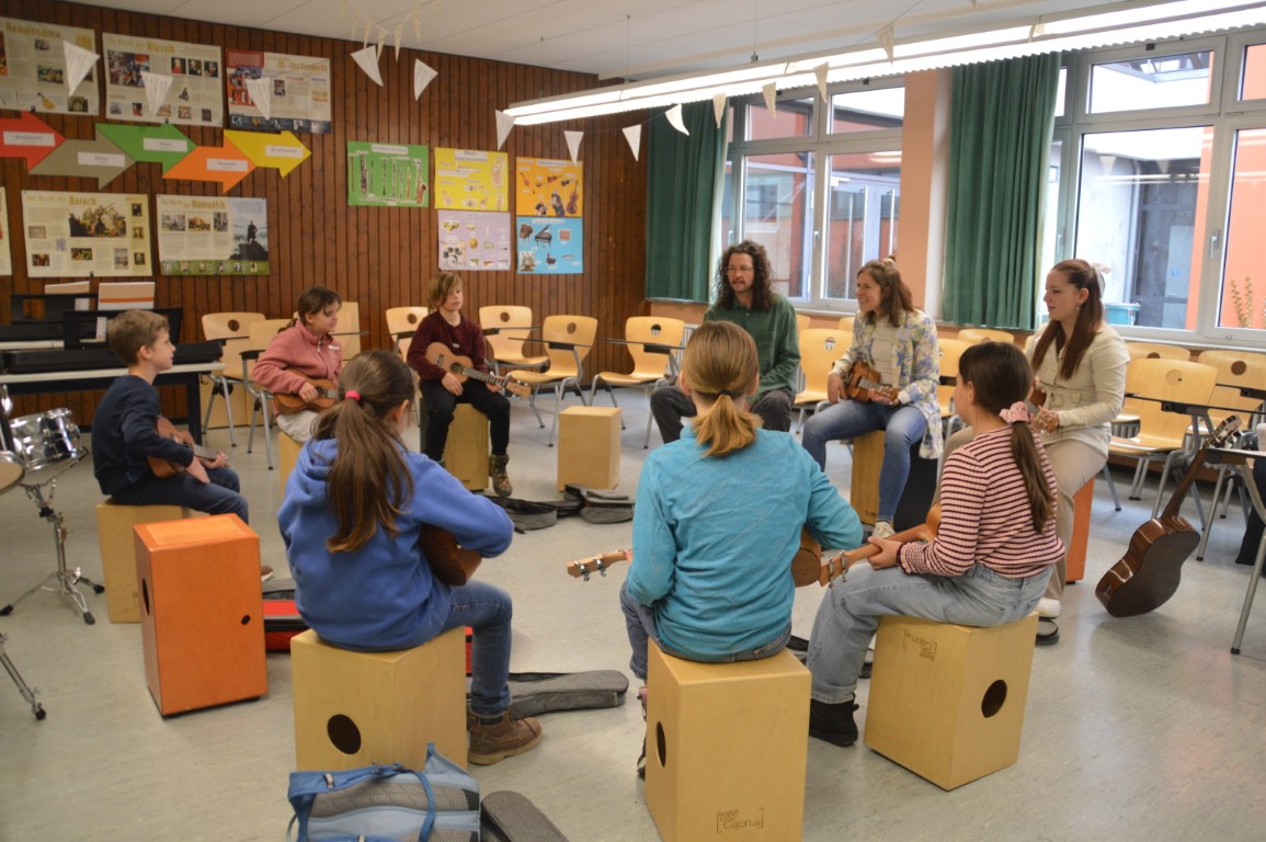 Besonders viel Begeisterung gab es im Musikbereich: Viele Kinder hielten zum ersten Mal eine Ukulele in der Hand und spielten stolz ihre ersten Akkorde. Auch der sportliche Parcours in der Sporthalle sorgte für jede Menge Bewegung, Spaß und lachende Gesichter. Kreativ ging es bei der Station „Gesunde Ernährung“ zu, bei der lustige Brotgesichter entstanden.